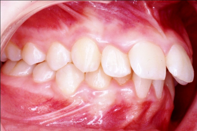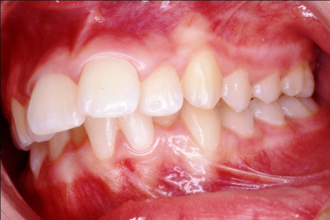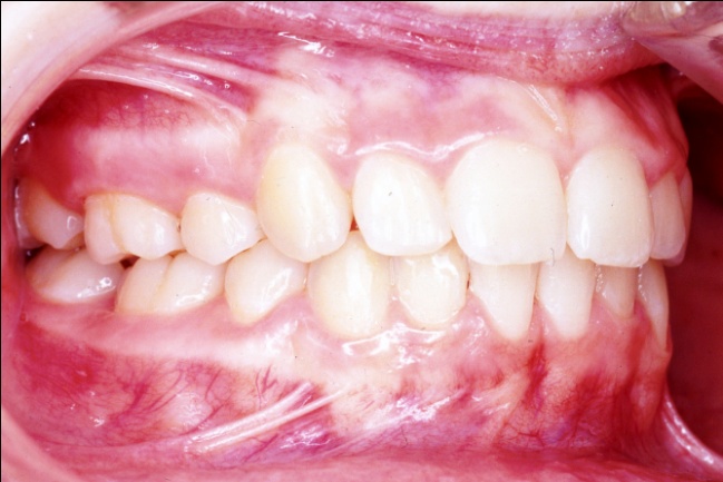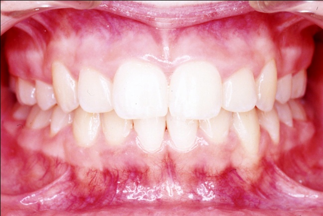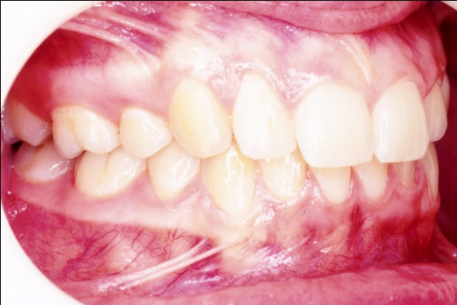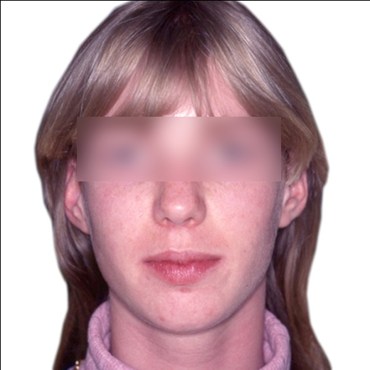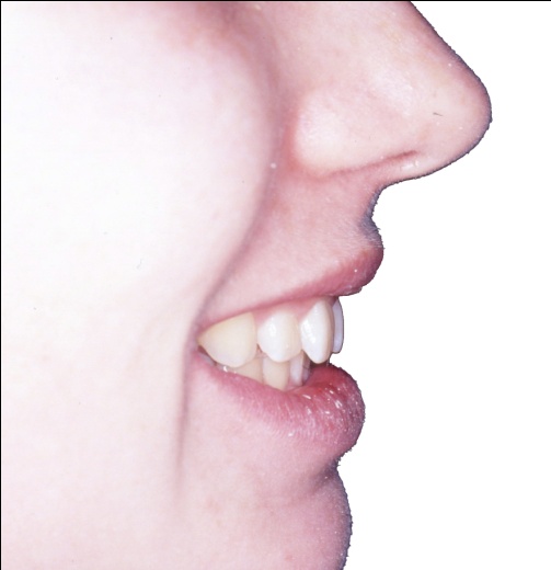 Les photos montrent, avant traitement, des dents supérieures projetées vers l’avant et encombrées. Après traitement, les arcades, ayant subi l’extraction de prémolaires, présentent un articulé redevenu normal et un alignement complet. Ce résultat positif ne reflète pourtant pas toute l’ampleur des changements : en orthodontie, les dents soutiennent directement les lèvres, et toute modification de leur position influence le profil. Ici, le repositionnement dentaire a eu un effet déterminant sur l’harmonie des tissus mous.
