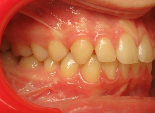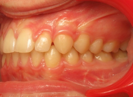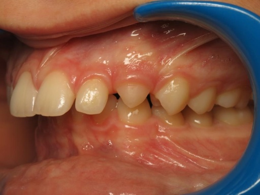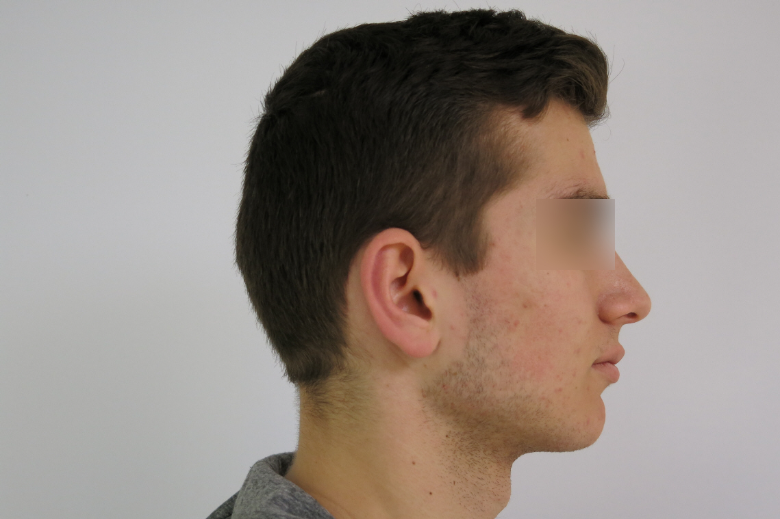 Ce cas illustre qu’un traitement orthodontique ne peut pas résoudre à lui seul un décalage squelettique important. La mandibule étant nettement en retrait, le patient présentait un contact traumatique entre les incisives inférieures et le palais, provoquant des blessures lors de la mastication. Il s’agissait donc avant tout d’une indication fonctionnelle , et non simplement esthétique. Un traitement orthopédique aurait été inefficace, et des extractions auraient compromis l’esthétique du profil. La chirurgie orthognathique s’imposait, après une préparation orthodontique rigoureuse.