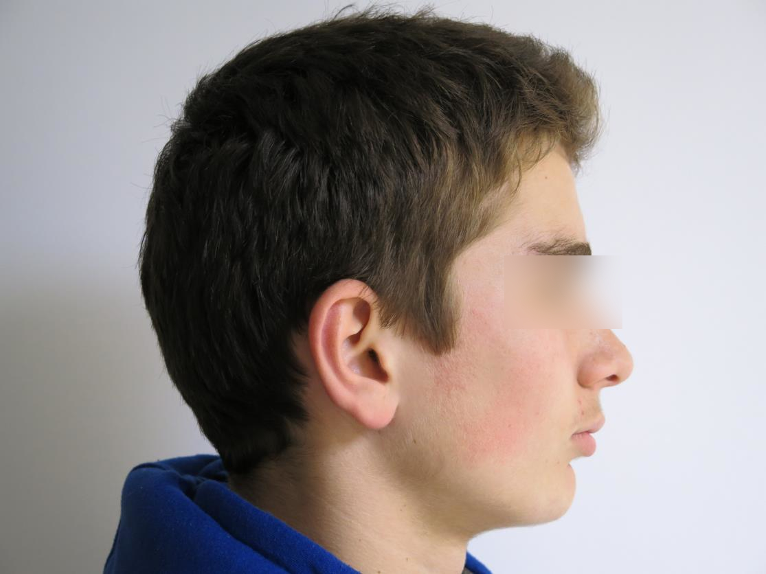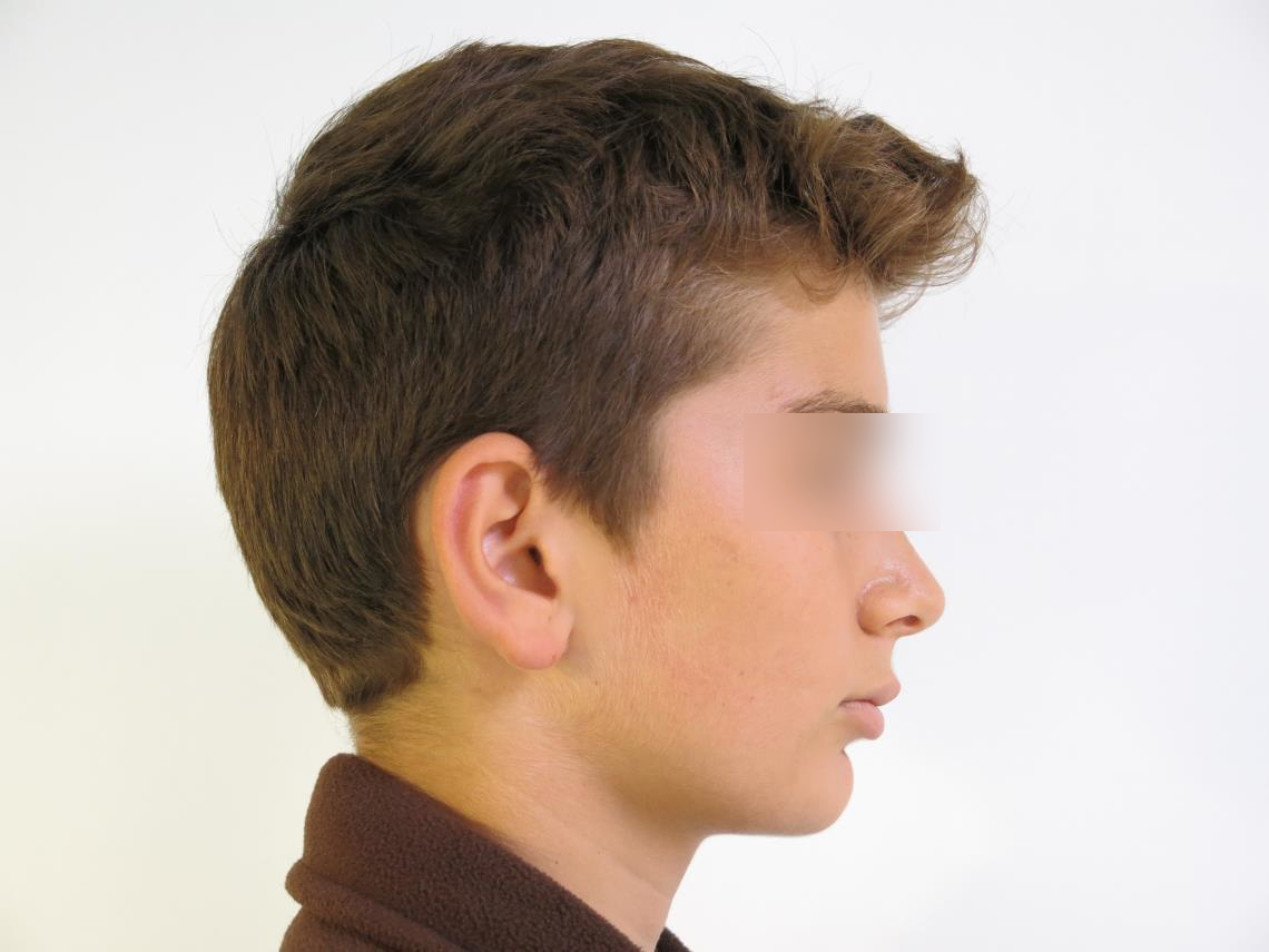 Les deux photos du haut montrent le profil avant la chirurgie ; celles du bas, à distance de l’intervention. On observe une stabilité remarquable du résultat dans le temps. Réalisée avant la fin de l’adolescence, la chirurgie permet aux structures osseuses et aux muscles de s’adapter mutuellement. Le reliquat de croissance post-opératoire consolide les fonctions. Ce cas illustre les concepts du Pr Jean Delaire, mon mentor, selon lesquels l’équilibre anatomique conditionne l’équilibre fonctionnel.(Chirurgien Dr H.Abbar)