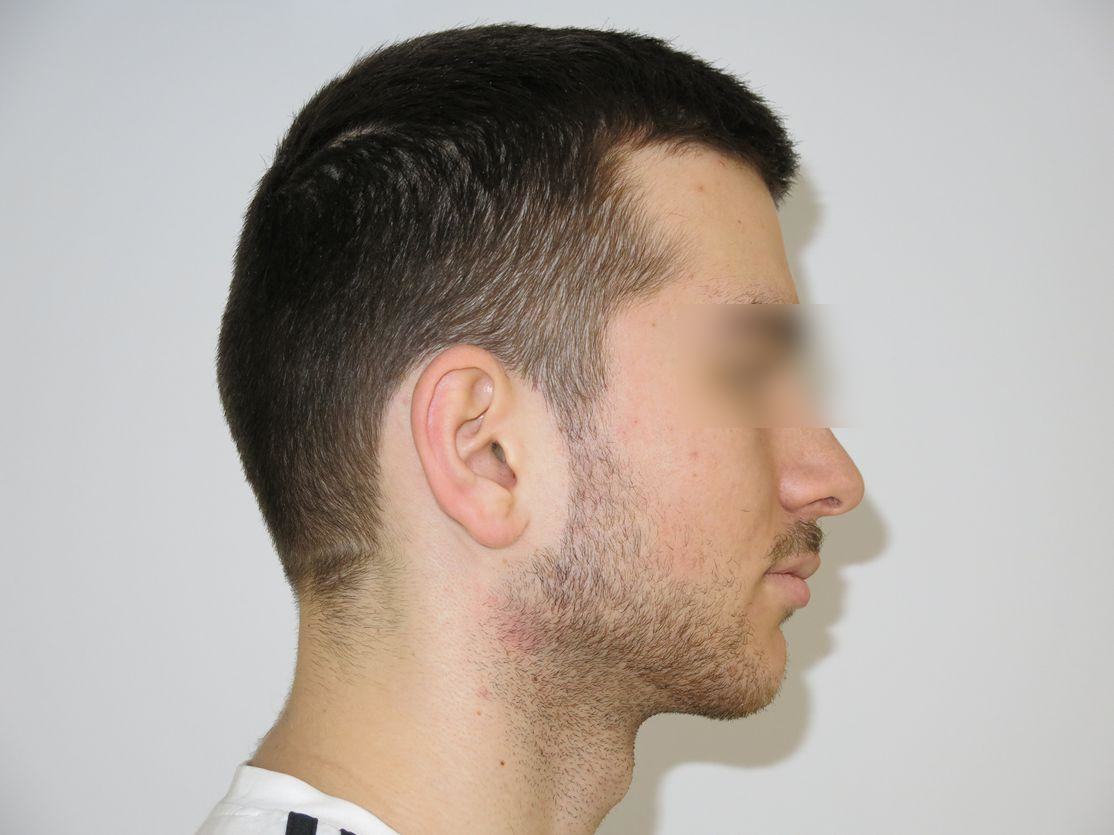 La chirurgie a permis une nette amélioration du profil par allongement de la branche horizontale de la mandibule. Le menton avance, le sillon labio-mentonnier s’adoucit, et l’équilibre facial est rétabli. Ce résultat esthétique n’était pas l’objectif premier du traitement, mais il en est la conséquence directe. Le profil est devenu plus harmonieux et rappelle, sans exagération, celui des visages emblématiques du cinéma américain.